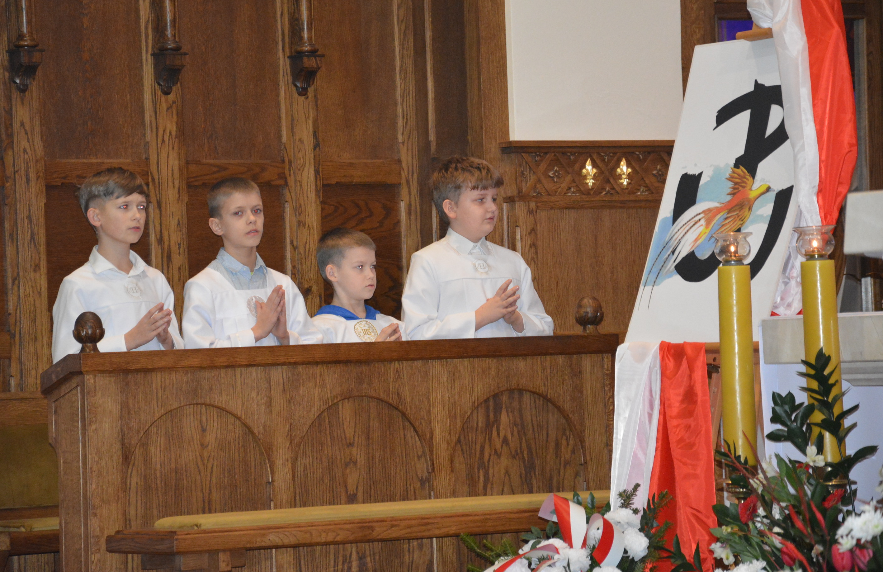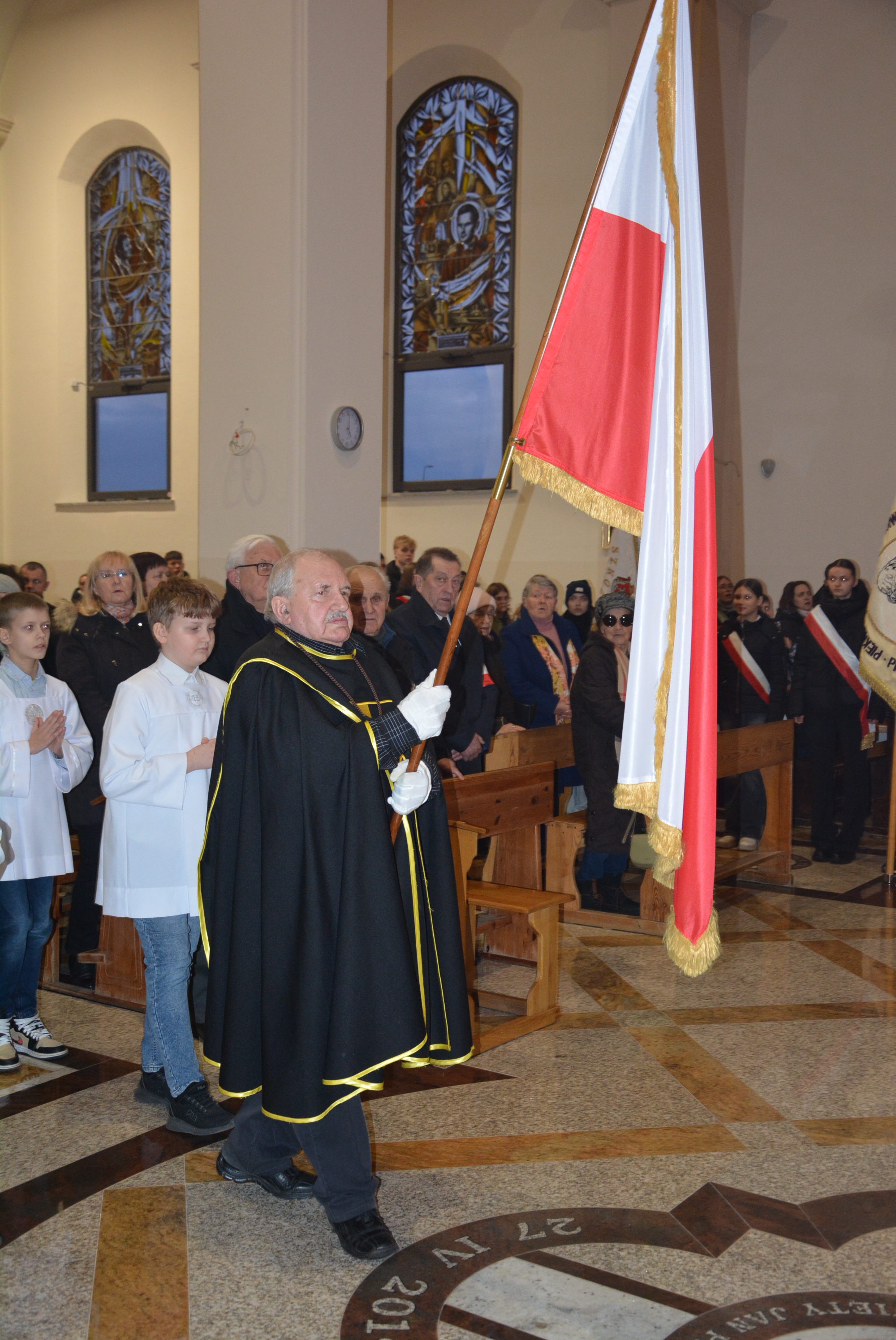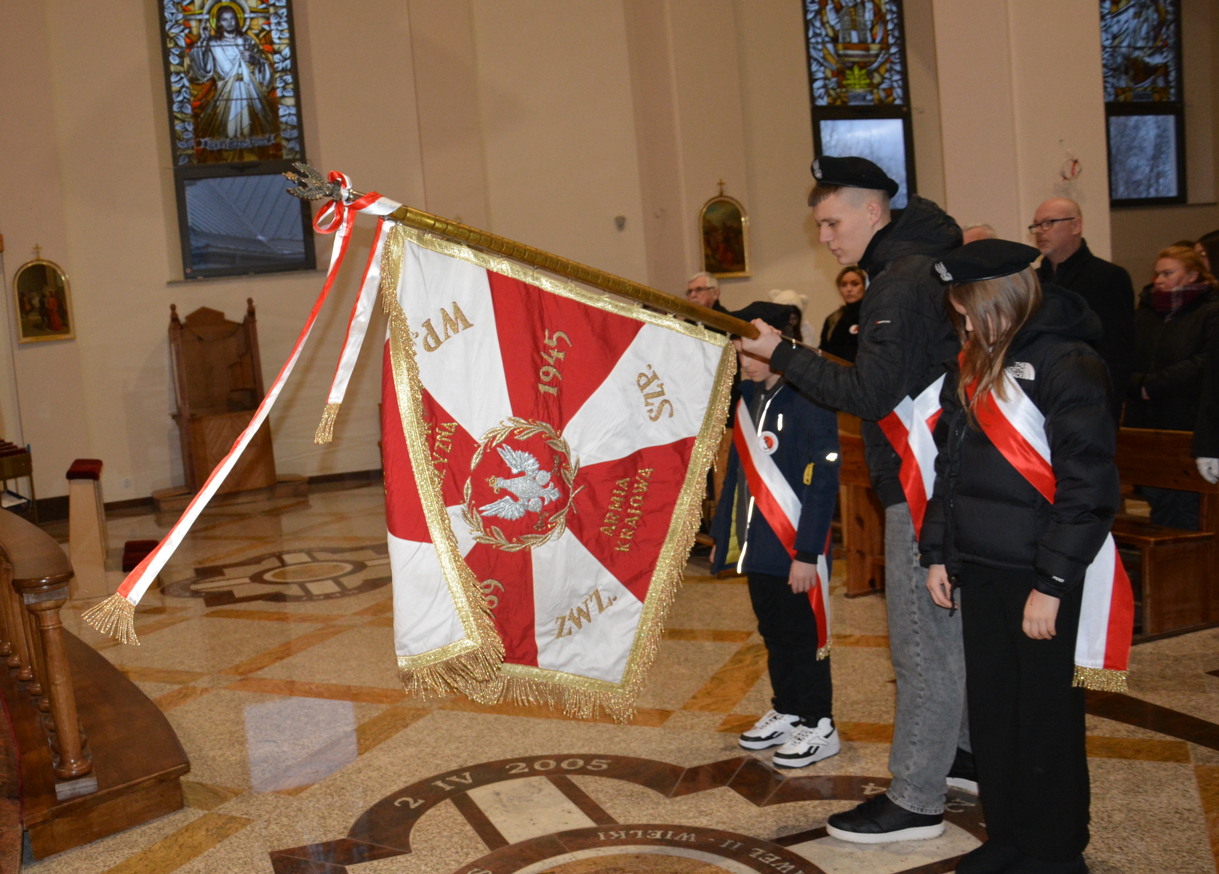 Podniosły charakter nabożeństwa podkreśliła obecność Pocztu Sztandarowego Żołnierzy AK Obwodu „Rajski Ptak”, który reprezentowali uczniowie z MKH im. AK ZR: Maja Korytkowska, Stanisław Wardakowski, Gabriel Jusiński i Piotr Jusiński. Były również  sztandar Towarzystwa Przyjaciół Radzymin i  liczne sztandary szkół z Gminy Radzymin. O oprawę Mszy Św. zadbali uczniowie: Lena Wardakowska – śpiew i Wiktor Stępniak – czytanie. W ten sposób nasza lokalna społeczność dała dowód pamięci o Przodkach, którzy walczyli o wolną Ojczyznę.