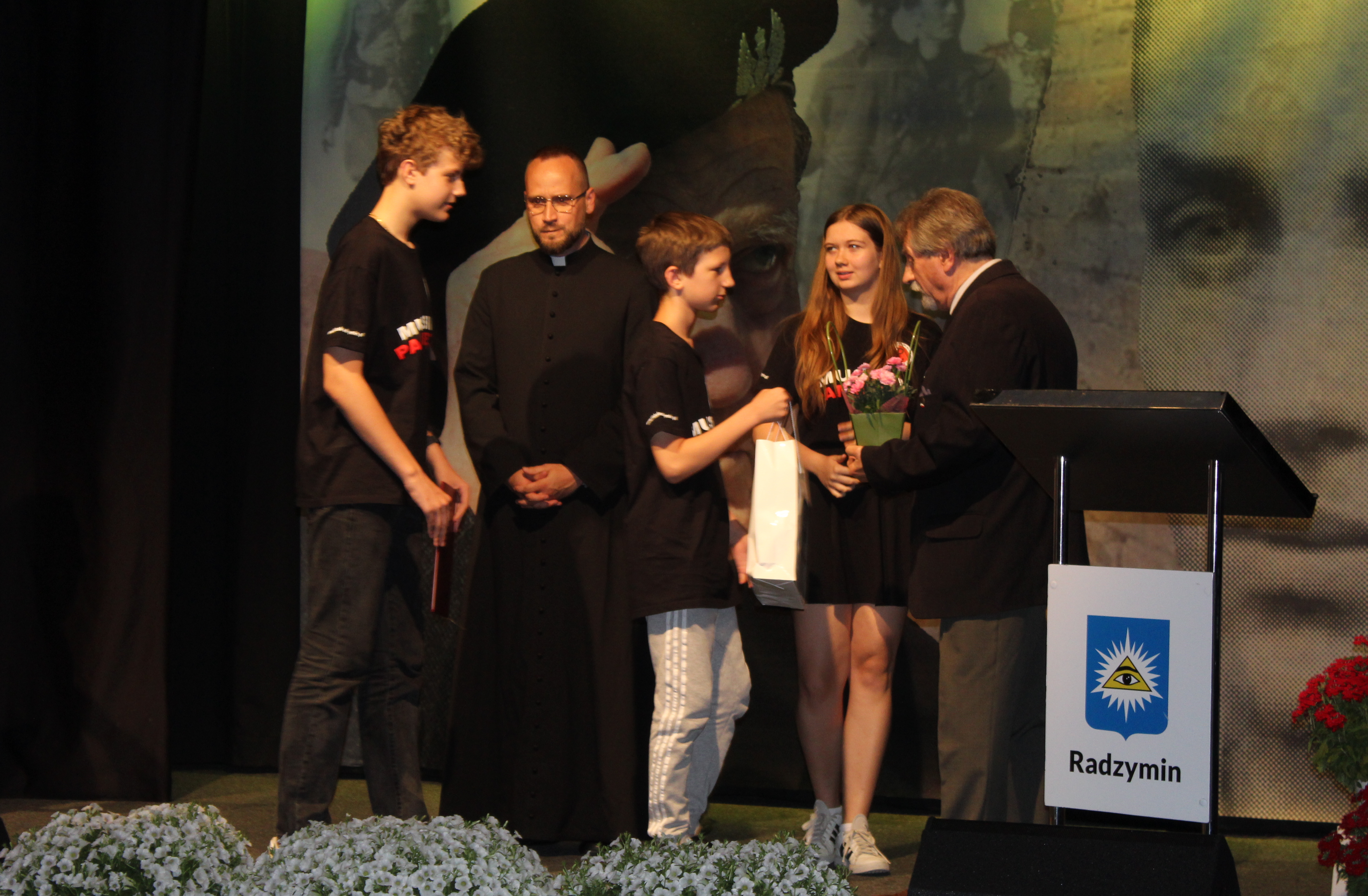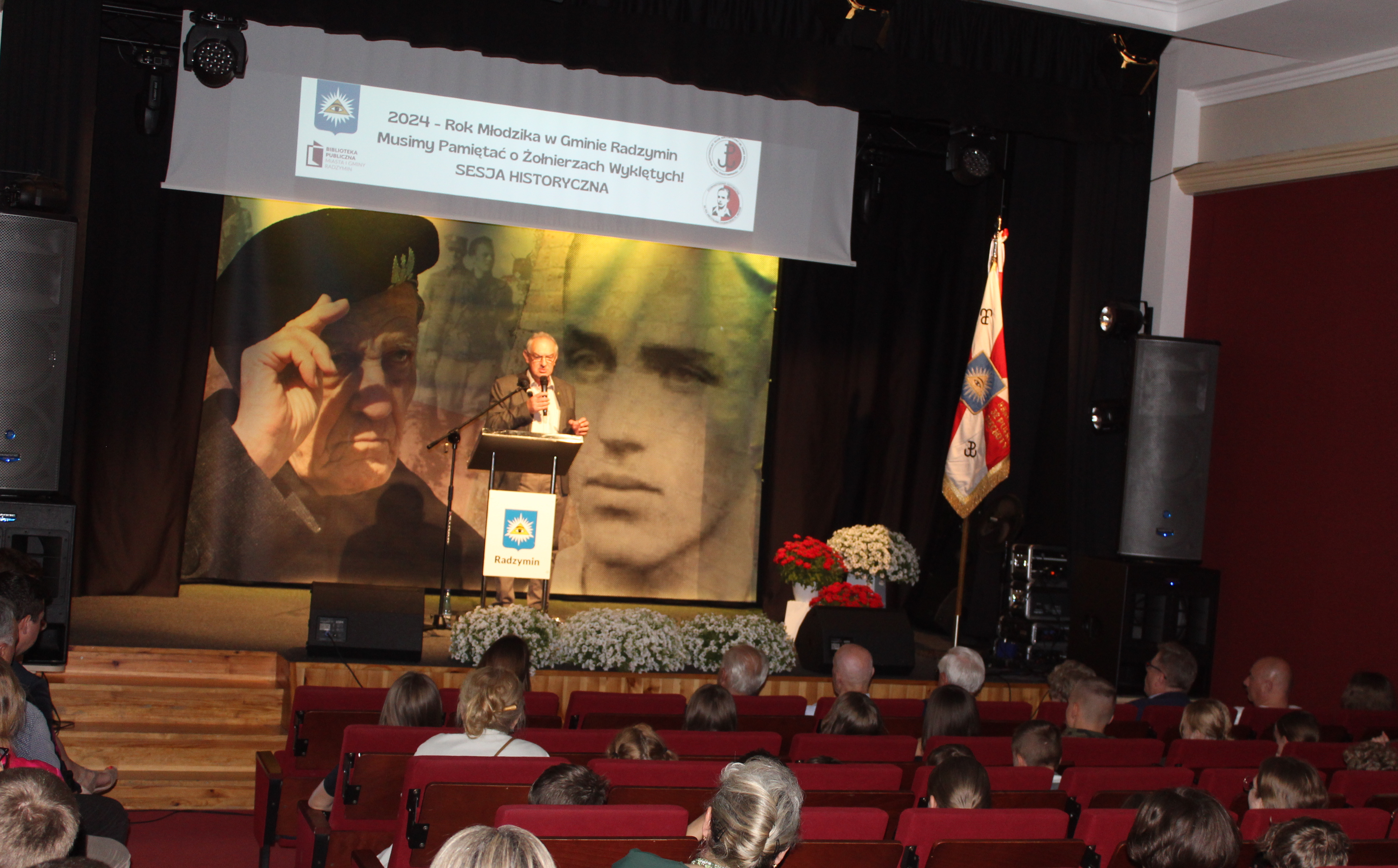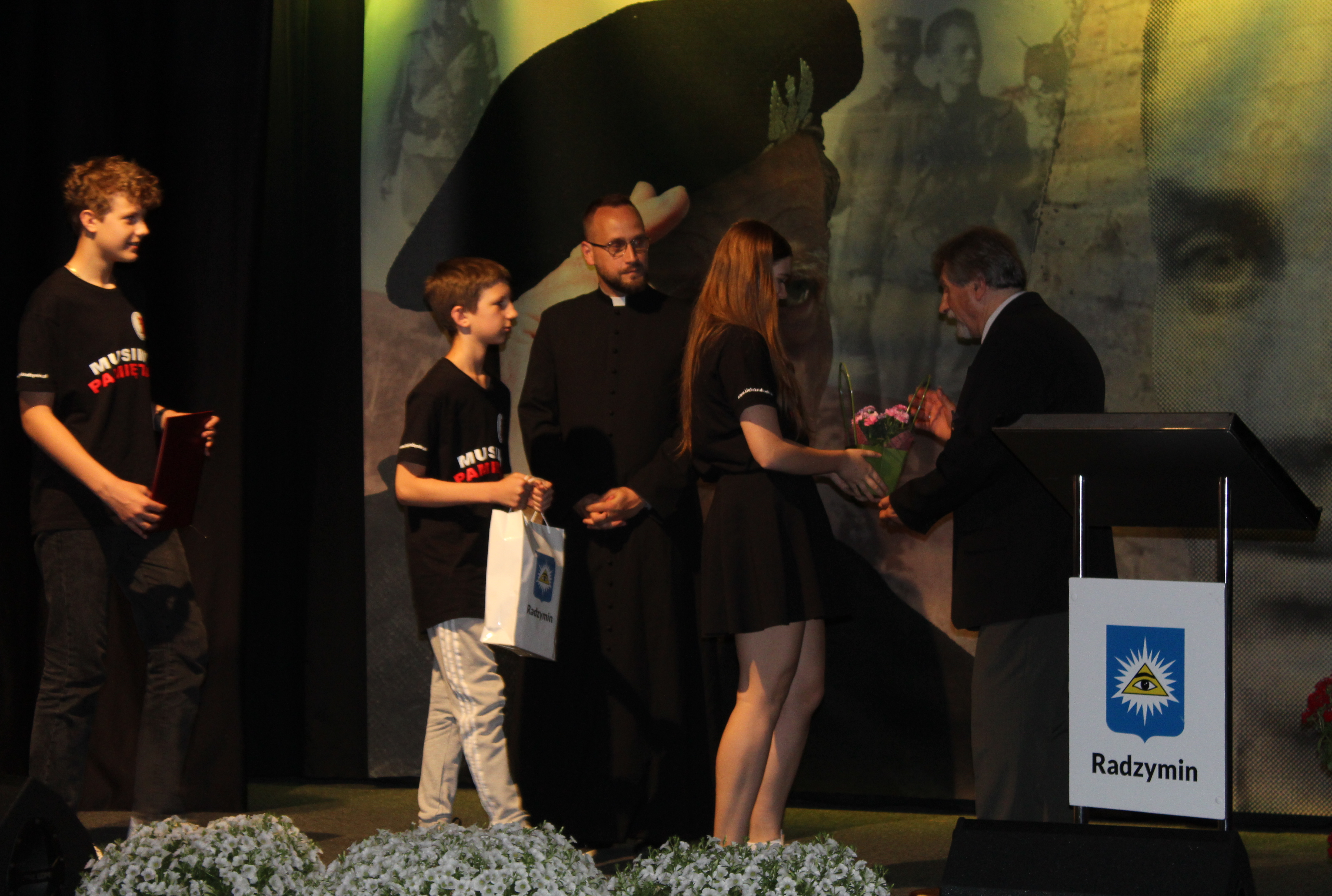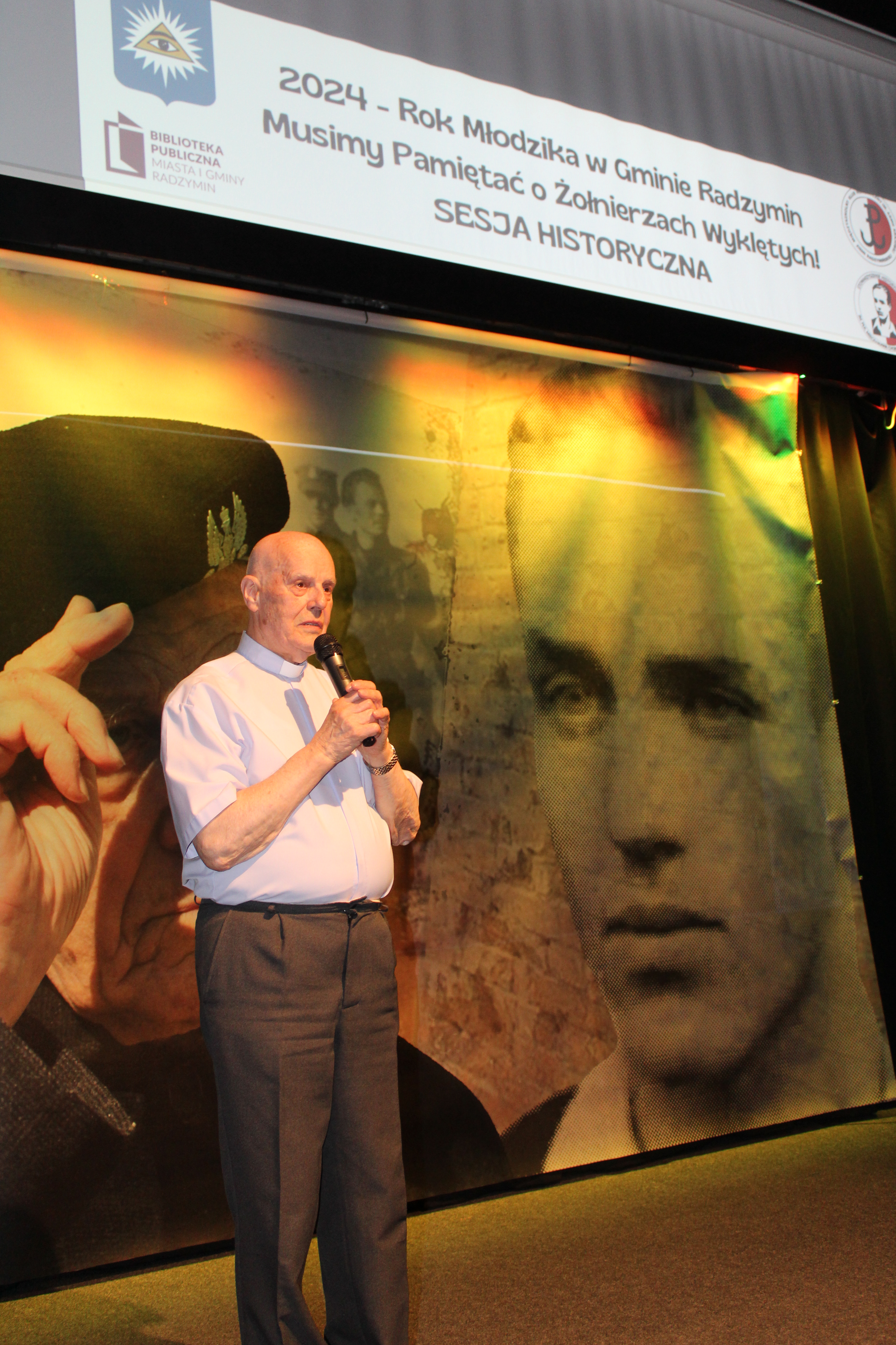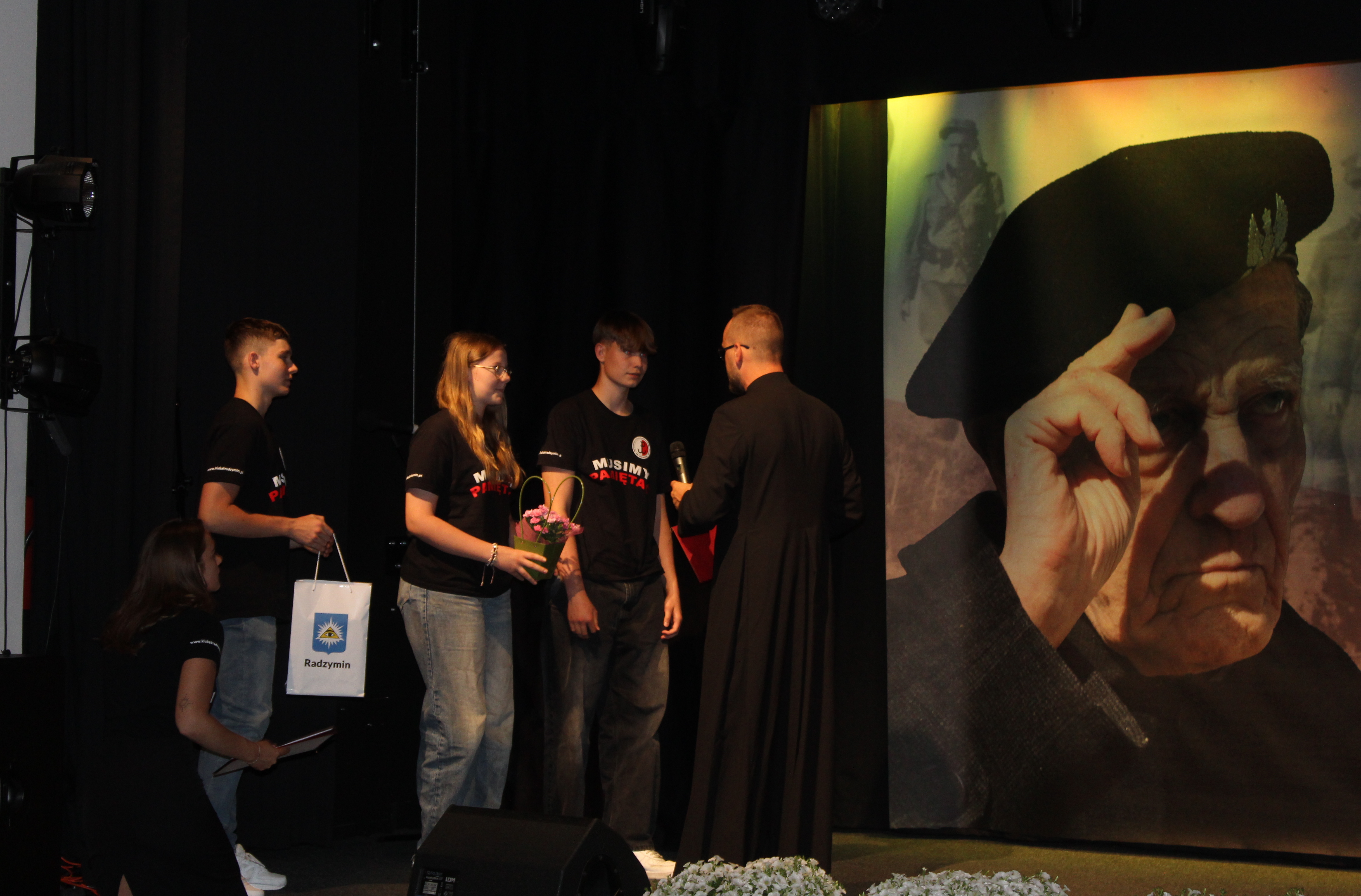 Spotkanie w Miejskiej Sali Koncertowej miało wymiar historyczno – edukacyjny, ale także patriotyczny. Dlatego ksiądz prałat Tadeusz Osiński poprowadził wspólną modlitwę w intencji śp. płk. Mieczysława Chojnackiego, wszystkich radzymińskich żołnierzy Armii Krajowej Obwodu „Rajski Ptak” oraz Żołnierzy Wyklętych – Bohaterów Niezłomnych, którzy po II wojnie światowej podjęli nierówną walkę z systemem komunistycznym.