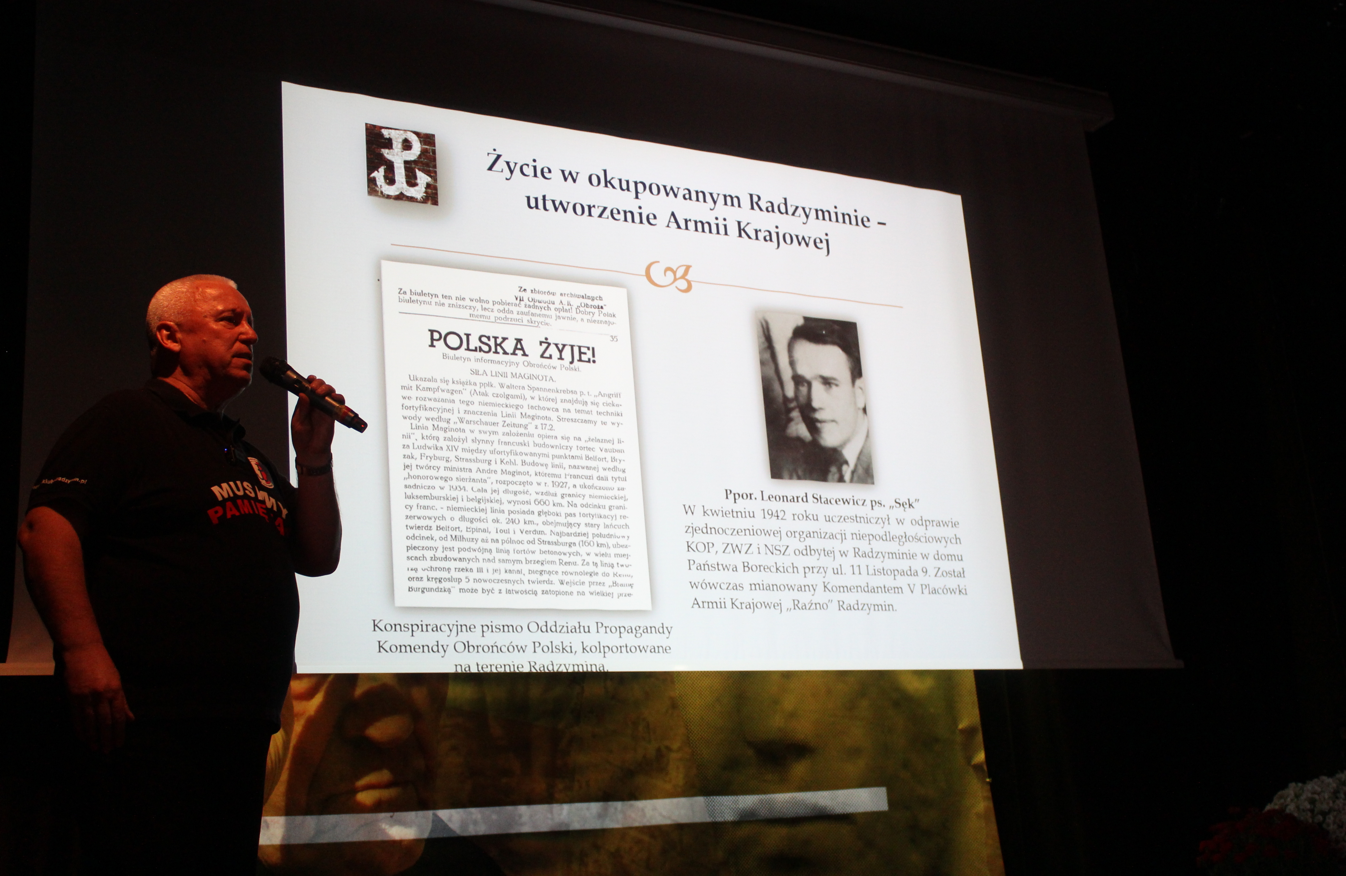 Później na scenę poproszono Michała Webera, historyka i dyrektora Pracowni Dokumentacji Dziejów Miasta Sierpc, który wygłosił referat poświęcony „Ruchowi Oporu Armii Krajowej w Sierpcu i okolicznych miejscowościach”. Należy podkreślić, że Pan Michał Weber bardzo aktywnie włączył się w obchody „Roku Młodzika” i zaszczycił nas już swoją obecnością 24 marca podczas uroczystości przy grobie płk. Mieczysława Chojnackiego na Cmentarzu Poległych w Radzyminie.