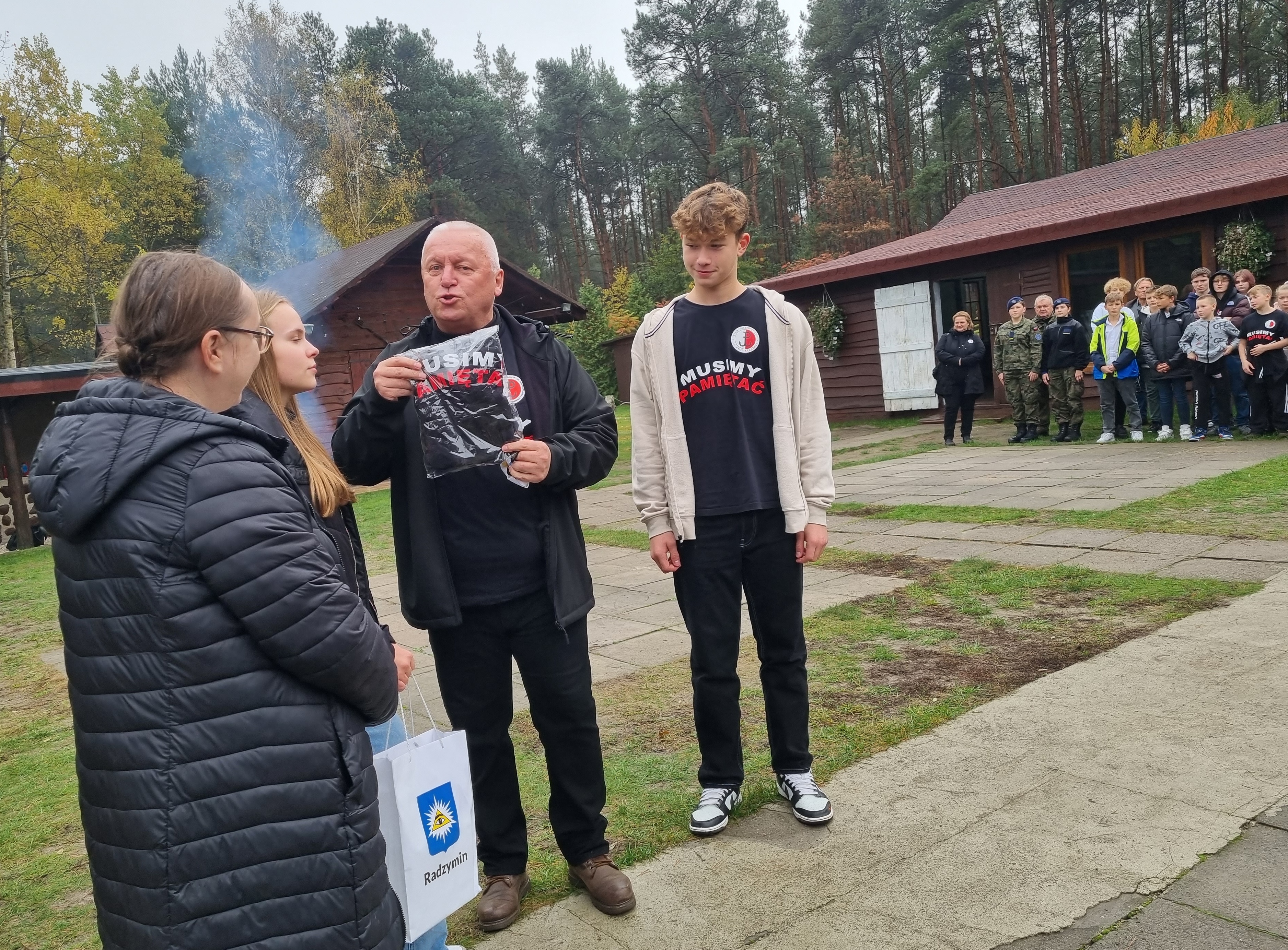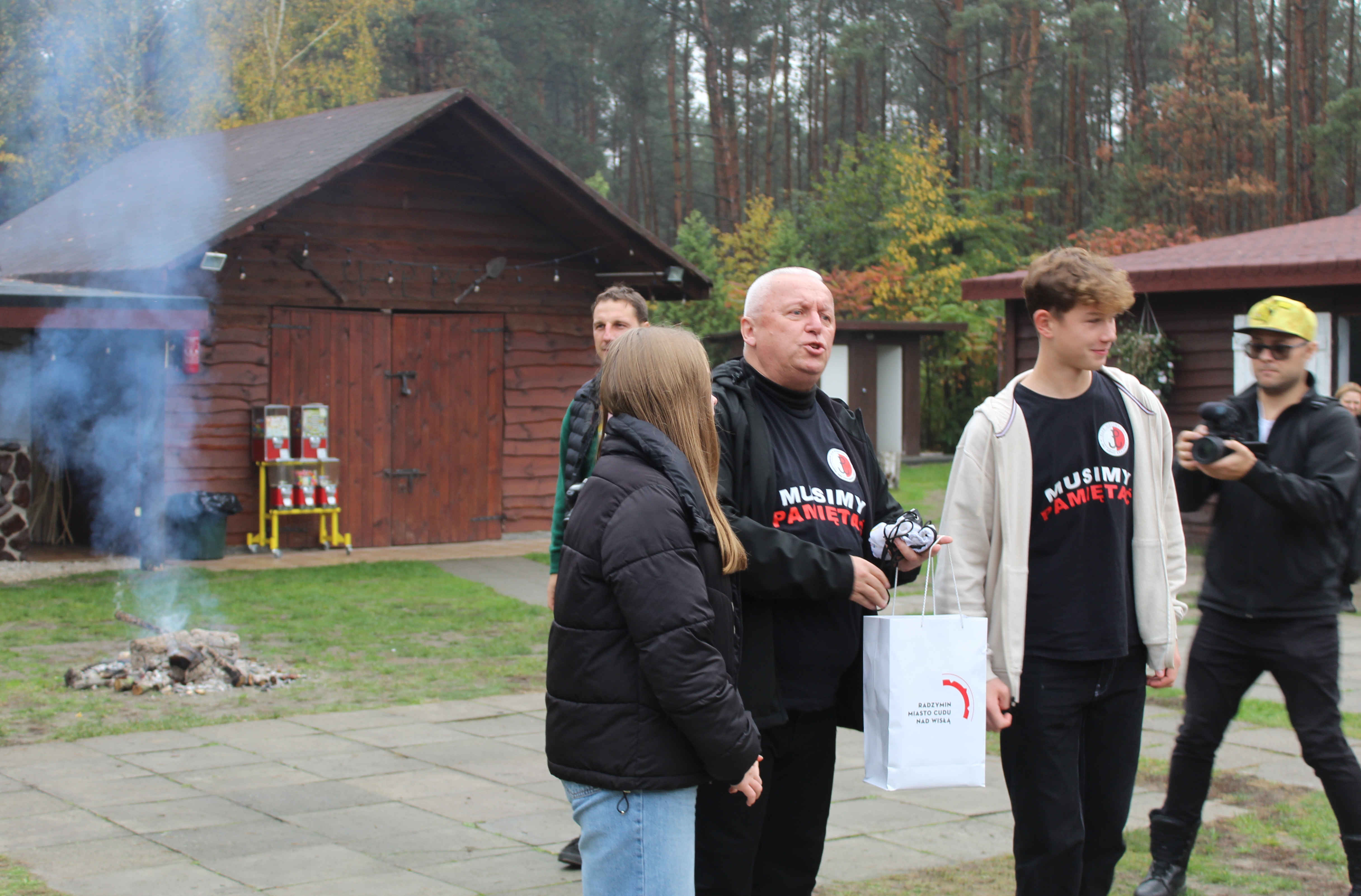 Później nastąpiło zwiedzanie pięknego Płocka (poszczególne grupy zwiedziły m.in. Katedrę w Płocku oraz Muzeum Mazowieckie) oraz złożenie kwiatów przy Panteonie Żołnierzy Wyklętych i Pomniku Rotmistrza Witolda Pileckiego. Na zakończenie wyjazdu uczniów z MKH im. AK ZR, rodziców, nauczycieli i zaproszonych gości do Płocka odbyło się wspólne ognisko w „Leśnym Zakątku” koło Płocka. Podczas spotkania nastąpiło podsumowanie całego wydarzenia oraz wręczenie Pani Ilonie Gosiewskiej – prezes Federacji Patriotycznej, koszulki Międzyszkolnego Klubu Historycznego im. Armii Krajowej Ziemi Radzymińskiej.
